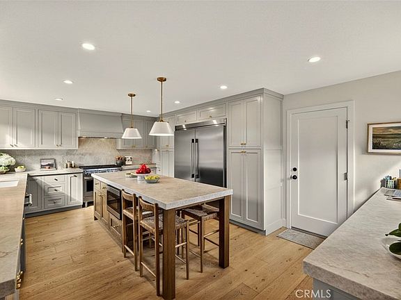 Set on an intimate three-home cul-de-sac with no neighbor on one side, the property feels exclusive and tranquil, yet remains moments from everything that makes this coastline world-renowned. Inside, abundant west-facing windows bathe the entry and main living areas in natural light. Significantly remodeled in 2024, the home showcases new engineered hardwood floors, built-ins, elevated finishes, upgraded systems (repipe, new HVAC, new sewer line and more) and a magazine-worthy, reimagined kitchen enhanced by warm Taj Mahal quartzite counters and chic pendants.