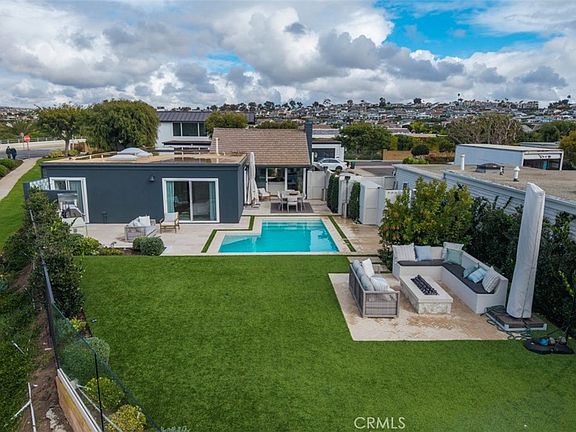 Outdoors, the lifestyle unfolds against an ocean-view backdrop. The exceptionally deep lot offers a private pool, generous green space, outdoor dining, integrated fire pit, built-in barbecue, and a vibrant outdoor shower, providing room to entertain or simply unwind in your own coastal retreat. An attached two-car garage and generous driveway add convenience and ease, completing a residence that feels as welcoming as it is refined.