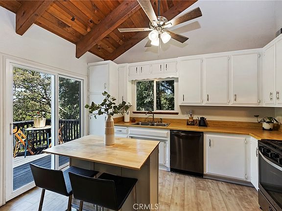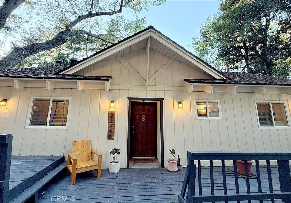Welcome home! This 3 bedroom 2½ bath home boasts beautiful views of the forest. Upon entering the home, you are greeted with a large open floor plan perfect for entertaining and enjoying the vast views from the comfort of the updated fireplace or outside on the deck. On the main level you have two bedrooms and a full bathroom. The main living room has large vaulted ceilings that flows into the kitchen area, giving you endless possibilities for entertaining or simply enjoying the serenity of the forest views. The home has updated double paned windows/sliding doors and a newer 40 year roof installed in 2016. Continue down the stairs to the primary bedroom and another living area complete with a second fireplace and deck. There is a bonus room which could be used as a 4th bedroom as well. Very close to downtown Crestline and Lake Gregory.