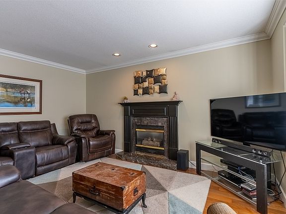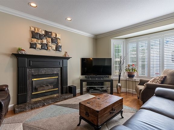 Tucked away on a quiet cul-de-sac, this beautiful ranch-style home is designed for both comfort and style. Offering 5 bedrooms and 3 bathrooms, it features hand-scraped hardwood floors, crown mouldings, and a thoughtfully finished basement. The kitchen is a standout with stainless steel appliances and a sleek silgranite sink. From the oversized covered deck, enjoy views of the landscaped backyard—an ideal space for summer entertaining. The primary suite includes a luxurious ensuite complete with jetted soaker tub and separate shower. Main floor laundry and a double garage add everyday convenience. The lower level expands your living space with a large rec room, 3 bedrooms, and a full bathroom. Additional highlights include underground irrigation, central vacuum, custom lighting, California shutters, two gas fireplaces, and an above-ground pool. A true family haven!