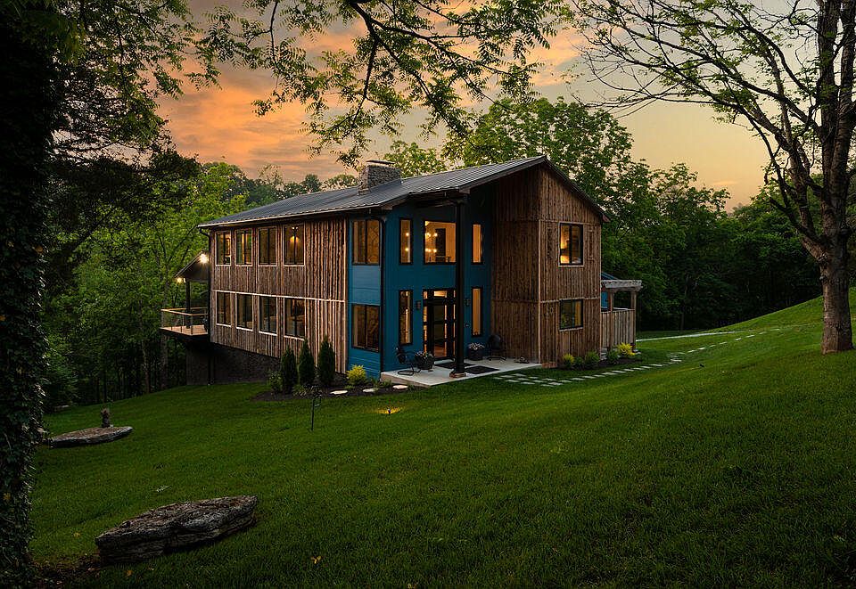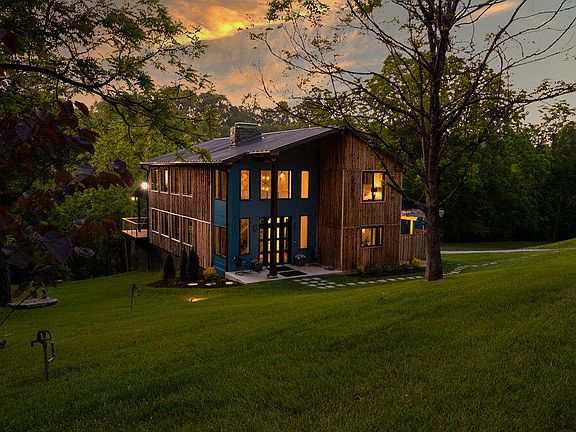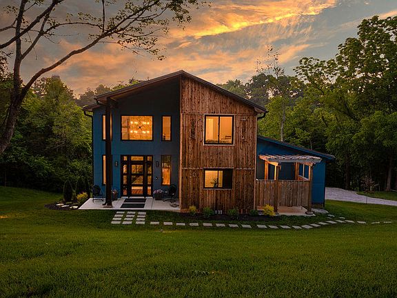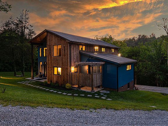 Enjoy breathtaking scenery from this modern masterpiece perched above Jessamine Creek just a few miles from Lexington. Expertly renovated to take full advantage of 5+ acres of beautiful surroundings combined with thoughtful incorporation of natural design elements, this home is both upscale and comfortable. Lovingly referred to as ''the house of many woods,'' due to its picturesque setting, large light-filled windows, and highest quality materials & craftsmanship; this is true indoor/outdoor living at its finest. Century-old, impressively reclaimed wood flooring, a walnut-tread floating staircase, and the charming vaulted exposed wood beam ceiling are several stunning details. The open floor plan flows and the soaring stone fireplace & waterfall countertop kitchen island are both captivating features. The expansive deck is perfect for entertaining & relaxation. With 4 bedrooms (2 suites) plus an office and 4.5 baths, there is plenty of room for friends & family and the outdoor shower is not to be missed! The walk-out basement complete with wet bar is yet another amazing space! Ideal for those seeking an incredible home surrounded by nature, yet not too far away from it all!