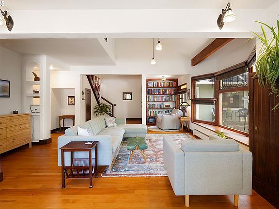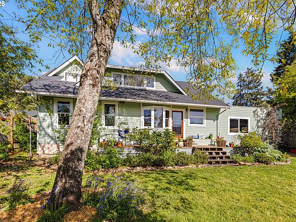 There’s so much to love about this remodeled 1920s craftsman, tucked away on a rare Friendly Area Neighborhood cul-de-sac on a large, private, sunny lot. Walking distance to Friendly Street Market. A hidden gem with surprises at every turn, including an attached apartment with separate alley entrance - perfect for dual living, short-term rental, or your home-based business. Character shines through with fir floors, beamed ceilings, soaring vaulted ceilings, striking architectural details, and picture windows that drench the space in natural light. The open loft adds charm and functionality, while the spacious upstairs bonus room (or 5th bedroom) and freshly remodeled bathroom—complete with a working sauna—offer those extra touches you’ll be excited to come home to. The kitchen features old-growth fir floors, butcher block counters, and a kitchen island. Ideal for garden enthusiasts, the sunny, level yard offers generous growing space with coveted southern and western exposure, surrounded by mature landscaping made up of approximately 75% Oregon natives and a thriving, low-maintenance pollinator garden—no pesticides or herbicides used in over 7 years. Enjoy apples, pears, plums, figs, and cherries from a mix of mature and young fruit trees. Out back, a private courtyard invites quiet moments as well as secluded place for your outdoor dining. New exterior paint in 2024, roof replaced in 2018, and a 2022-installed electrical bypass generator with a 50-gallon freestanding propane tank included. Plenty of parking with driveways off both Madison and the alley. South Eugene schools.