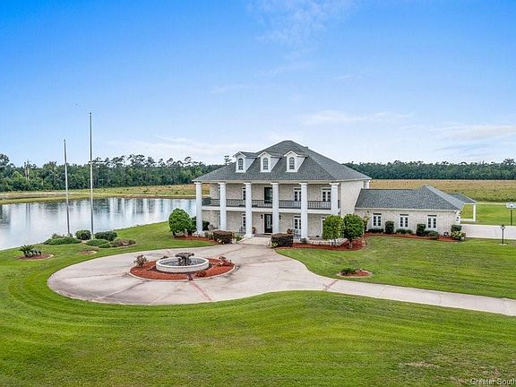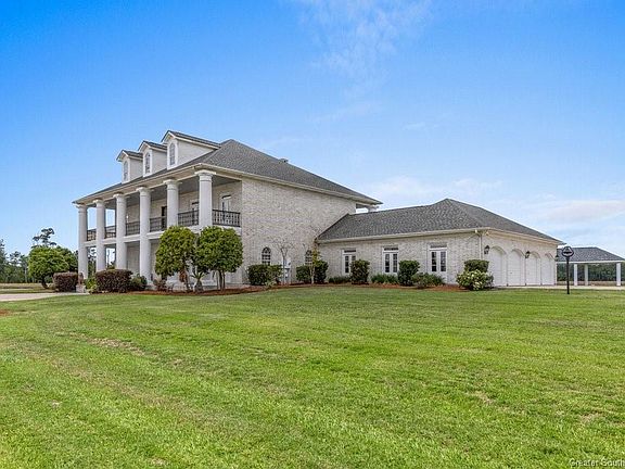 Welcome to "BELLE MAISON" ! Magnificent Country Estate poised on an impeccable 121 acre setting with a balance of lush lawns, green pastures and a beautiful lake. Unparalleled in architectural design, this Classic Southern home offers every amenity one could desire, and affords comfort for family gatherings or elegant parties. Custom from top to bottom with formal & informal spaces. Professional kitchen w/commercial grade appliances, abundance of custom cabinets & island w/granite countertops, butler's pantry & craft room off kitchen as a bonus. Soaring ceilings take your breath away the minute you step into the foyer. Amazing views of the lake can be seen from most rooms in the home. Spacious great room with wet bar area featuring ice machine, beverage cooler & custom bar. Formal dining, breakfast area, exercise room, media room w/loft area for gaming tables. Luxurious primary master suite has lots of marble, custom shower, huge soaking tub, walk-in closet & dual vanities. Upstairs has 4 bedrooms all oversized with full baths & walk-in closets. Magnificent inground, saltwater Gunite pool w/sundeck & heated spa. Pool house with covered deck features loft area, dressing quarters & full bath. 4 car garage, 40 x 65 metal workshop w/several awnings & loft for storage. The entrance to this estate has an automatic Iron gate with brick columns & keypad entry. Huge lake stocked with fish surround the home. New roof and the interior of home has been freshly painted with neutral color palette and lots of updates. Located in flood zone X so no flood insurance required. You must see this breathtaking estate in person to enjoy the grandeur. Seller reserves mineral rights.