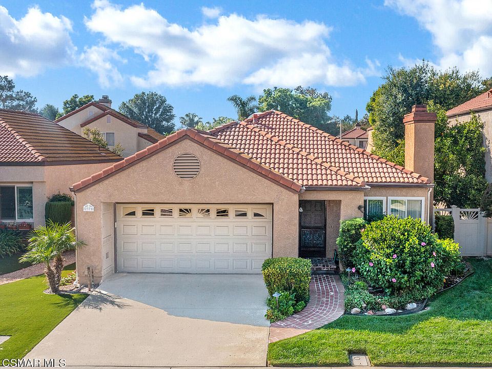 Located in the desirable Autumnwood community of Simi Valley, this well-maintained 3-bedroom, 2-bath single-story home offers approximately 1,375 sq. ft. of living space on a 3,920 sq. ft. lot with a 2-car attached garage. A brick walkway framed by mature greenery and a blooming hibiscus bush leads to the welcoming front entry. Inside, the light-filled living room offers a vaulted ceiling, a classic brick fireplace, and a large picture window that creates a warm and open atmosphere. The adjoining dining area features a lighted ceiling fan, mirrored wall, and slider to the side yard, blending indoor and outdoor enjoyment. The updated kitchen showcases granite countertops, pendant lighting, a breakfast bar, and quality LG and Maytag appliances. It opens to a flexible family or multi-purpose space with tile flooring and track lighting — perfect for gatherings, work, or play. Just beyond, an added-on family room provides additional living space with a ceiling fan, surround sound speakers, and a slider to the backyard patio for easy entertaining. There are three comfortable bedrooms, including a primary suite with vaulted ceiling, mirrored closets, and a newly remodeled walk-in shower featuring handrails and a built-in bench. The hall bathroom includes a tub/shower combo, and there's convenient linen storage in the hallway. The enclosed backyard offers a relaxing retreat with a concrete patio, grassy area, rose and hydrangea planters, and a lemon tree ready for summer lemonade. Additional highlights include dual-paned windows, a NEST thermostat, professional outdoor lighting, and an attached 2-car garage with built-in storage, attic access, and laundry hookups. Washer, dryer, and refrigerator are included in the sale. Residents of Autumnwood enjoy a low HOA with access to a community pool, spa, park, and pathways. The location offers quick access to Rancho Santa Susana Park & Community Center, local schools, shopping, dining, and the 118 Freeway.