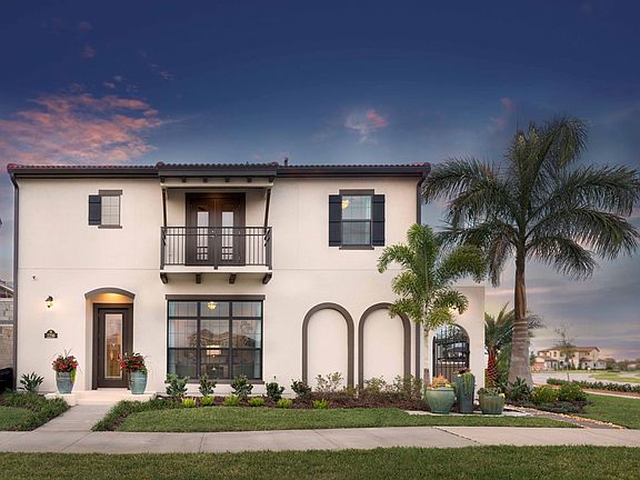 This 2-story Merida II home features 4 bedrooms with an optional Bonus Room, a large Great Room with Open Kitchen and Cafe overlooking the Lanai and Courtyard.. The Merida II offers several Optional Features including Golf Cart Garage and extra Baths.