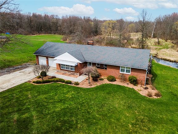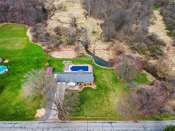 This beautifully maintained, stately brick ranch combines peaceful country-style living with all the amenities of town just minutes away. Handsome hardwood floors flow throughout most of the main level, adding warmth and character to every room. The sun-drenched living room features a striking wall of windows and a cozy log-burning fireplace, seamlessly connecting to the dining room for easy entertaining. The kitchen showcases an abundance of oak cabinetry, contrasting counters and a convenient serving peninsula. The home boasts updated bathrooms and flexible living spaces, including a unique third bedroom with a clever laundry conversion in the closet. The laundry can easily be relocated to the basement, converting the closet back with ease. The neat and clean basement is ready for your finishing touches and offers a second log-burning fireplace. A private backyard retreat hosts a stunning 16x38 in-ground pool surrounded by lush landscaping, small stream and serene views.