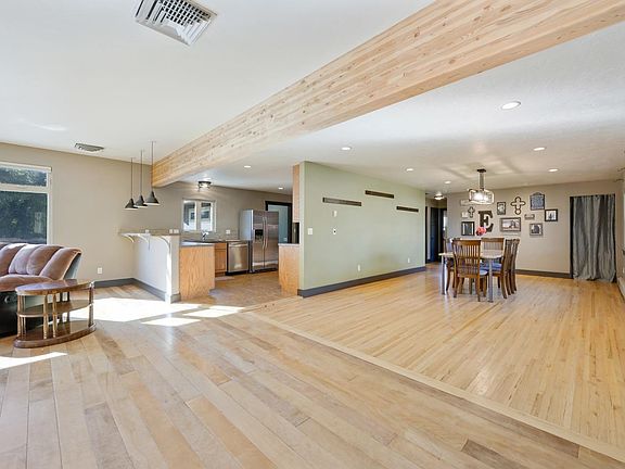 Would you like a home with lots of room to roam? Well it awaits on 1.13 acres, in the highly desirable Redlands area. Tucked away, this home is a quiet & serene retreat. An ideal horse & animal property, there is lots of space for trotting & wandering. Out front is a well kept yard with landscaping, a covered porch, & room for an RV. Walk on inside to find an immaculate, open, & incredibly well lit living space. The dining room has plenty of space for a large table & other accessories or furniture, & will certainly have you ready to invite/entertain guests. The kitchen is just around the corner & contains all the essential stainless steel appliances, stylish cement finished countertops with complimentary backsplash, & some beautiful glass paned cupboards to complete the aesthetic. You'll find the sit up counter is the perfect spot for a casual meal, & the big pantry has lots of room for all your goodies, & doubles as a laundry space. The living room itself has large transom windows which bring forth the sunshine & a double door to the back patio. The electric pellet stove in the corner brings a cozy & warm feel to the room both decoratively & functionally. Something else to note & love about these large spaces are the contemporary fixtures & the gorgeous hardwood flooring to provide that extra touch. The primary suite has lots of room to unwind & relax, & access to a walk-in closet. The primary en-suite has a large tub/shower, slate style tile, heated floors & an awesome wood style vanity. Off the dining room you’ll find two large additional bedrooms with lots of closet space as well as a four piece bathroom with some really cool retro style tile work. Downstairs is a finished basement complete with utility space, an additional bedroom & another full bathroom. The recently added three car garage has ample storage space & some built in ceiling shelving to help illustrate that point. The home also comes with a surprise bonus attic room rife with possibilities & options. The backyard is one of the crowning jewels of this property. A large open patio, a side yard, the shed, & of course space for horses, chickens or other pack animals are just some of the many things to love about the outdoor space. Additionally there is a hot water hose bib/spigot. The property comes fully irrigated & there is no pesky HOA. There is also the option for solar with panels installed. Come see this one today!