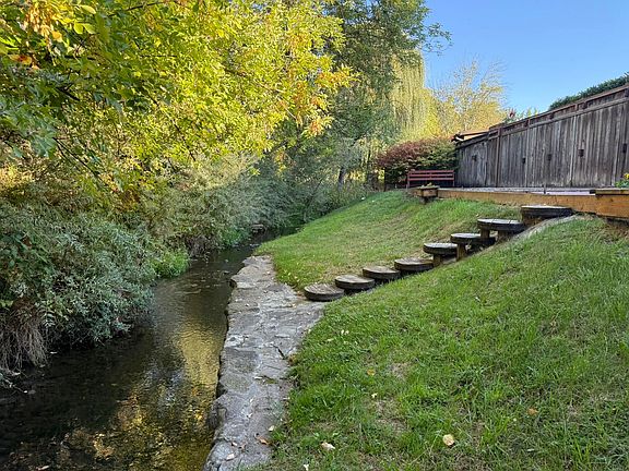 Beautifully landscaped yardPrivate back patioFamily roomFormal dining roomEnclosed custom gardenPeaceful creek