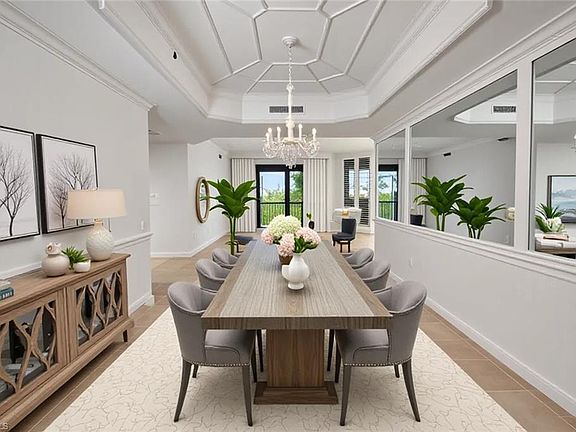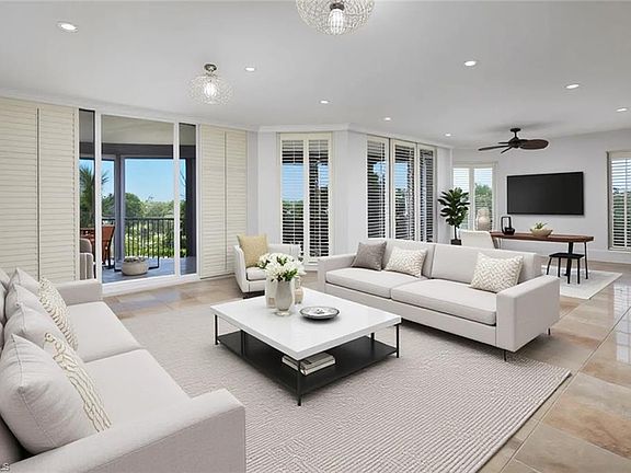 C12953 – Impeccable corner residence in Treviso, located inside The Colony at Pelican Landing, which is Bonita Springs’ premier luxury golf and beach community. This beautifully maintained and spacious single-family-style corner residence boasts a fabulous and functional floor plan that offers the perfect blend of elegance, comfort, and privacy. Enjoy exquisite panoramic views of emerald fairways, lush tropical palms, and manicured landscaping from this bright, wraparound corner unit, filled with natural light from floor-to-ceiling glass slicing doors and windows. The expansive layout features 3 ensuite bedrooms and a private study, 3.5 baths, and multiple living and entertaining spaces, including a family room, formal living and dining rooms, and a charming breakfast nook. The lavish primary suite is a private retreat, complete with a spa-style bathroom and dual custom walk-in closets and private access to the lanai. A true split-bedroom floor plan offers optimal privacy for the two ensuite guest bedrooms. Additional highlights include: Private elevator foyer, 42-foot screened lanai plus two open-air balconies. Two assigned garage spaces and extra airconditoned secure storage. High-end finishes including plantation shutters, crown molding, 9’8” ceilings, ceiling fans, and marble/granite surfaces and automatic storm shutters. This is a rare opportunity to enjoy resort-style living in a meticulously cared-for residence with timeless luxury and unbeatable views. Treviso’s updated common areas feature transitional furnishings and marble floors with views over water features. Three guest suites, which include a two bedroom apartment. A beautiful secure lobby, elegant social room, billiards room, theater, and a newly updated fitness center complete the interior amenities. Spa and free form large pool with graceful beach access and a separate social pavilion. The Bay Club, a Colony private waterfront dining facility, offers intimate dining or informal sunset dining/entertainment. Experience a full array of community amenities such as a 34 acre island beach park with boat shuttle, Kayaking, canoeing, tennis, pickle ball, bocce and sailing. Close to Coconut Point Shopping Center. 15 minutes to the airport.