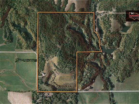 This 100-acre turnkey property in northern Davis County offers the full Southern Iowa outdoor experience — excellent hunting, great fishing, and comfortable accommodations, all ready to enjoy from day one. The property features a recently finished 1,280 sq. ft. cabin with two bedrooms, a bathroom, laundry, pantry, and a spacious open kitchen and living area — perfect for weekends with family or hunting trips with friends. The adjoining steel building offers abundant storage for tractors, side-by-sides, or even a camper, with a large overhead door for easy access. The land itself is designed with both wildlife and recreation in mind. The majority of the farm is timber, offering thick bedding cover created from recent logging that has encouraged excellent undergrowth and sunlight to the forest floor. There are over seven acres of established food plots, strategically placed blinds, and a well-maintained trail system providing access throughout the property. Two freshly planted perennial plots seeded in clover and winter wheat draw deer and turkeys early in the season, while larger plots feature standing soybeans for late-season attraction and green plots near blinds for early and mid-season bow hunting opportunities. Seven ponds are scattered across the property, four of which are a half-acre or larger — including one over three acres. At least three ponds are stocked with bass, crappie, bluegill, walleye, and perch, providing year-round fishing opportunities.