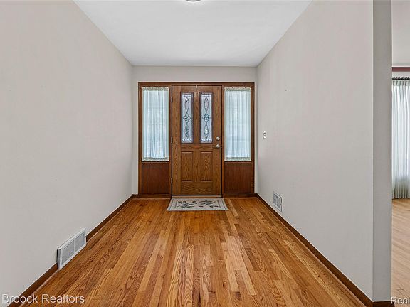 Four bedroom brick home well located within the city of Farmington. Beautiful exposed hardwood floors on the first and second level. Maple cabinets in kitchen - all appliances included. Large living and formal DR that leads out to a great three season enclosed porch overlooking the spacious backyard. Three bedrooms up and two full baths, including the primary BR with an en suite bath. The main bath updated with double sinks and corian counters. Lower level family room with wet bar, 4th bedroom and half bath. Unfinished basement with laundry. Two car attached garage with direct access. Central air. Replacement windows. Great deck out back. Walk to downtown Farmington.
