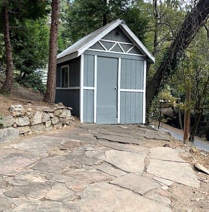 Enjoy the Mountain Lifestyle and Lake Community with this 1 bed 1 bath Cozy Cabin in the middle of Natures Paradise. This property can be a profitable investment or a peaceful retreat located closely to scenic walking trails, lake, and community festivities. Sit outside and enjoy the fresh air with a morning cup of coffee. This home offers a wonderful sized 7,831 sf lot, with your own driveway within a short distance to the front door. You can take advantage of the extra 8x9 Storage Shed as an office with electricity ran to it or just as an extra place to put your belongings.