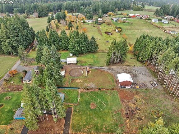 Discover rural living in this 1.5-acre property in Estacada with views over the neighboring pasture. This charming 2-bedroom, 2-bathroom home offers 1,250 square feet of comfortable living space and maximizes use of the size. The heart of the home features a welcoming living room with a cozy pellet stove, ideal for those crisp Oregon evenings. The functional kitchen boasts a convenient peninsula design, flowing seamlessly into the dining area where sliding doors open to a rear deck – perfect for morning coffee or evening barbecues. Laminate flooring throughout the main living areas ensures easy maintenance, while the mud/laundry room (with access to the bathroom and exterior) provides ample storage for all your necessities. The primary bedroom features a private bathroom with separate tub and shower as well as a walk-in closet. A detached 2-car garage includes additional storage space and parking, while the gravel road will lead you down past the barn to the substantial 40-foot by 36-foot shop featuring 14-foot doors, clearance inside allowing plenty of room to add a loft space inside, concrete pad, power, and water connection – ideal for projects, hobbies, or equipment storage. Abundant parking for equipment, trailers, trucks, etc. Horse lovers will appreciate the well-designed barn with two stalls, each featuring private runs, plus a tack room and storage area plus a "hot" fenced, dedicated pasture. The round pen provides excellent space for training or exercise. Located conveniently off Highway 211, this property offers the perfect balance of rural tranquility and accessibility. Nearby amenities include local trails, rivers, schools, restaurants and shopping, ensuring you have everything needed for comfortable country living while maintaining easy access to necessary conveniences.