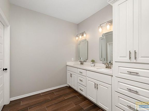 This modern 4-bedroom, 3-bath home features an open-concept layout, combining Luxury and Comfort. High ceilings with decorative details enhance the spacious living, dining, and kitchen areas, creating a welcoming atmosphere. The kitchen is equipped with sleek finishes, ample counter space, and high-end appliances, perfect for entertaining or everyday use. A convenient laundry room is located just off the kitchen. The primary suite is a luxurious retreat with a double vanity and his and her closets, offering ample storage. The remaining bedrooms are generously sized, ideal for family, guests, or an office. Three stylish bathrooms complete the home's thoughtful design, providing modern comfort with elegant touches throughout.