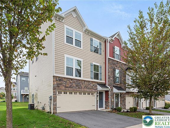 Welcome to this stunning end-unit townhome built in 2019, located in the highly sought-after Madison Farms community. This modern, move-in-ready home features a bright, open-concept layout with fresh paint throughout. The main level boasts a spacious living and dining area perfect for entertaining, while the kitchen offers ample counter space and contemporary finishes. Upstairs, you'll find three generous bedrooms and 2.5 well-appointed baths, including a private primary suite. The lower level adds valuable extra living space—ideal for a home office, gym, or media room. As an end unit, enjoy added privacy and natural light throughout the home. Conveniently located just minutes from Route 33, Route 22, and I-78, commuting is a breeze. Whether you're heading to work or exploring the Lehigh Valley, everything is within easy reach. Don’t miss your chance to own this beautiful townhome in one of the area's most desirable neighborhoods!