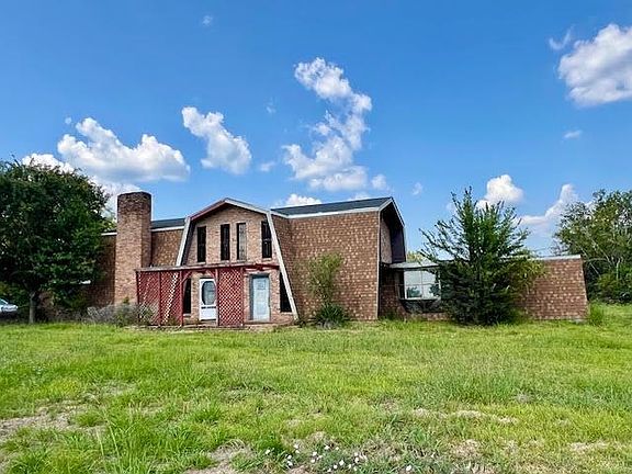 Spacious brick home set on a generous 2-acre lot, complete with a pond and guest house featuring a covered patio. The main residence offers a welcoming layout, highlighted by high ceilings in living room with chandeliers and a brick fireplace. An interior laundry room adds convenience, while a rear foyer provides an additional entryway and storage space. Contains an attached 2-car garage.