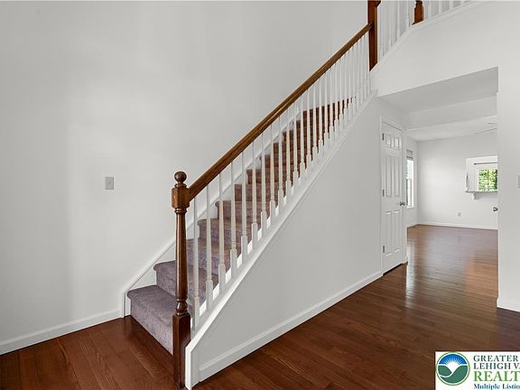 OPEN HOUSES SAT 5/17 & SUN 5/18...Showings begin Saturday. Spacious and modern 3BR, 2.5BA twin home located in the desirable Timberidge community of North Whitehall Township. This well-maintained Colonial offers a first-floor primary suite with a walk-in closet and private bath, plus two additional bedrooms and a loft on the second level—perfect for a home office or flex space. Featuring nearly 2,000 sq ft of living space, the home boasts an open floor plan with vaulted ceilings, skylights, and hardwood flooring throughout the main level. The eat-in kitchen includes stainless steel appliances and flows seamlessly into the comfortable living area, ideal for entertaining. Outdoor living is a highlight, with a covered front porch, rear deck, and fire pit area—perfect for relaxing or hosting guests. The full walk-out basement offers ample storage or the opportunity to finish for expanded living space or a family room. Set on a quiet cul-de-sac and just steps from the scenic Ironton Rail Trail, with convenient access to shopping, dining, and major highways. Additional features include an attached 2-car garage, central A/C, electric heat pump, public water/sewer, and NO HOA.