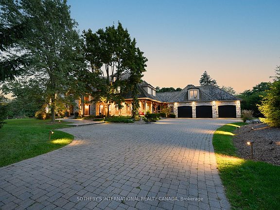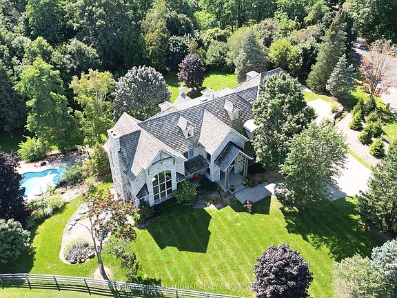 Nestled in the scenic countryside of rural Burlington, this stunning estate offers a perfect blend of rustic charm & modern luxury. Recently renovated by Baeumler Quality Construction, the interior exudes an airy Scandinavian ambience. Glass wall & door features, exposed wood beams & a 30 ft ceiling height in the great room with an oversized Indiana Limestone mantel create a dramatic effect. Upgraded with state-of-the-art Smart Home systems & cutting edge automation. Connected to natural gas with a Generac 24kw natural gas backup generator. Enjoy breathtaking unobstructed views of the Toronto skyline, Escarpment & Rattlesnake Point. Backyard paradise features a large deck, meticulous landscape, pond, pool & a floodlit hill, ideal for tobogganing. Beautiful Kilbride offers families the tranquility of nature with the convenience of quick city access. 45 minutes to Toronto, close to amenities, Lowville Golf Club, North Burlington Tennis Club, equestrian stables & renowned hiking trails. Endless features & upgrades, designer finishes, Richard & Levesque cabinetry, gourmet appliances, walk-in pantry, heated floors, home theatre, 2 laundry rooms, walk-out bsmt, 3 Tesla chargers, separate living quarters above garage.
