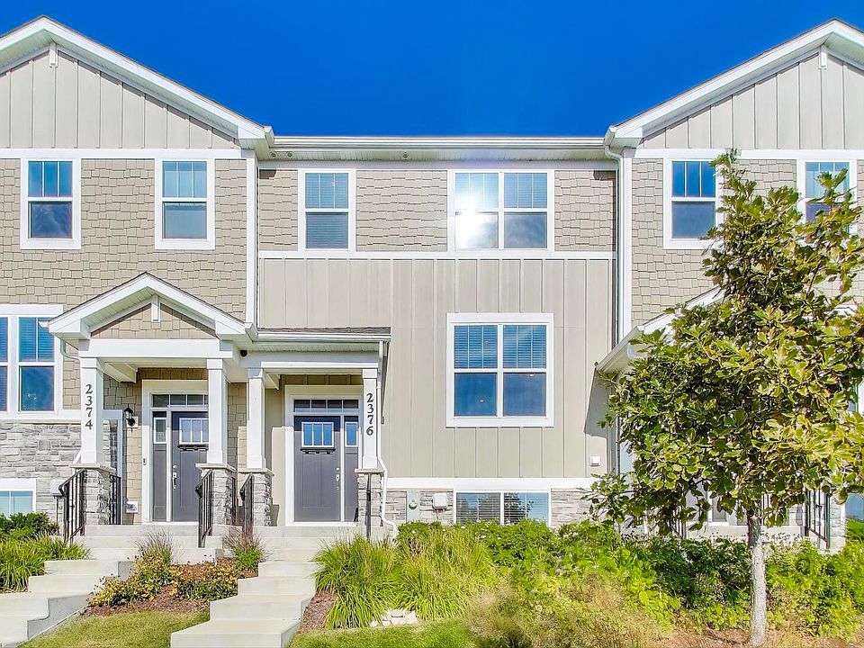 Welcome to your dream tri-level townhome in Park Pointe, a 3-year-old home perfectly positioned on a premium lot showcasing unmatched tranquil pond views and beautifully landscaped open space. This thoughtfully designed home features an open concept main level with a sun-filled living room, dining area, and a stylish kitchen appointed with quartz countertops, stainless steel appliances, a large center island, upgraded backsplash, and Aristokraft white cabinetry with hardware. A conveniently located half bath includes an upgraded vanity, creating a welcoming space for homeowners and guests alike. Sliding glass doors from the living and dining room open to a private deck, the perfect place to grill, or simply enjoy your morning coffee. Upstairs, the owner's suite is a retreat with its spacious walk-in closet, private bath with dual vanities, and peaceful views of the pond and landscaped grounds. Two additional bedrooms and a full bath complete the second floor, offering comfort and convenience for family or guests. The finished lower level provides versatile living space ideal for a cozy family room, home office, gym, or media area. Since completion, the homeowners have invested $15,000 in thoughtful upgrades including premium lighting fixtures, ceiling fans in all bedrooms, smart home technology with Ring integration, freshly painted interiors, a whole-home soft water system, and a finished garage complete with epoxy floors, cabinets, and painted walls. Park Pointe offers not only modern living but also unmatched access to recreation and convenience. The community is ideally located near several major corridors including Route 25, Route 59, Route 20, Route 31, and Stearns Road, making commuting simple. Just a short distance away is Koehler Fields, a recreational complex with ball fields, football and soccer areas, and open play space. Residents also enjoy proximity to the Illinois Prairie Path, one of the nation's largest recreational trail systems, along with abundant options for shopping, dining, and entertainment. Combining premium pond views, $15,000 in upgrades, and a prime location, this townhome delivers comfort, convenience, and one of the most desirable settings in Park Pointe.