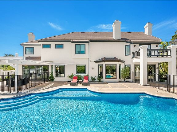 Nestled within the Forest section of the guard-gated community of Coto de Caza, this extensively upgraded custom home is an unmatched retreat. Set on an impressive, approx. 19,000 square foot lot situated on a single loaded cul-de-sac street behind its own gate, it offers privacy, panoramic views of the surrounding landscape, and luxurious, recently updated interiors. Spanning nearly 6,000 square feet of living area, this comprehensively remodeled residence features five bedrooms, including one on the ground level, five and a half baths, an office, and a den. Grand in scale, the floor plan encompasses formal sitting and dining areas as well as a more casual great room with a living section and the home’s all-new gourmet kitchen. This gourmet space with dual islands is complete with custom cabinetry, finishes, and a suite of top-of-the-line appliances. A fully built out pantry with additional storage, a sink and dishwashers complements the culinary haven. Accessed via oversized doors, the property’s stunning backyard with multiple seating sections is centered around the saltwater pool and spa. Ideal of enjoyment of the outdoors year round, this private space features a covered gazebo and an elevated viewing area for taking in the stunning vistas. The primary suite is located on the upper level - fully remodeled, it offers a balcony, a newly built out closet and a luxurious bathroom Clad in marble, this serene oasis with double vanities, a jetted tub, and a massive walk in steam shower is truly tranquil. The remaining secondary bedrooms are ample in size, with corresponding baths and walk-in closets. Whole house updates include a new HVAC system, water filtration, updated piping, new windows, doors, and walnut as well as marble flooring throughout. Coto de Caza’s residents have access to extensive amenities, including horse trails, a clubhouse, a state-of-the-art gym, and multiple pools in addition to tennis courts and two championship golf courses designed by Robert Trent Jones Jr. All of this just minutes away from area’s finest shopping and dining!