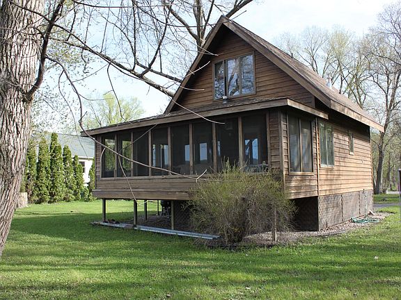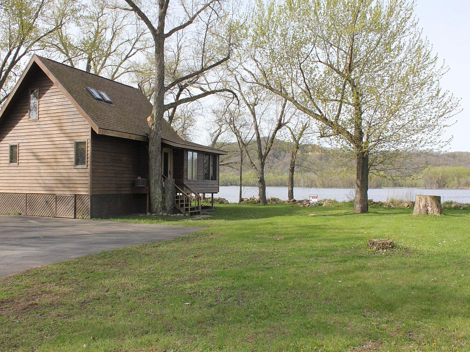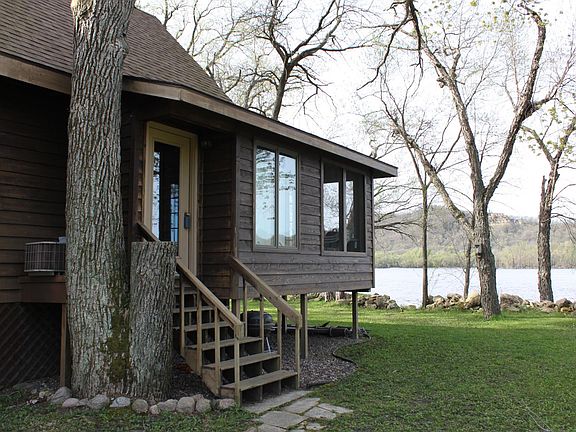 A sunsational setting along the Mississippi River with panoramic views from the river to the MN bluffs. Use this 1 bedroom cabin for a relaxing retreat and or an investment opportunity. Enjoy the comfortable cabin and the beauty this setting offers. A spacious lot and great outdoor space to enjoy featuring a circle drive and nearly 180+ feet of river frontage to use for recreation. A screen porch along the river side allows endless hours of serenity and views. Comforts of a living space offering extra warmth from the pellet stove, kitchen, dining and full bathroom with stackable laundry complete the main. The upper level offers a delightful bedroom setting with stunning views from the large picture window, a truly great view anytime of the day. Upper bath offers soaker tub.