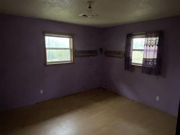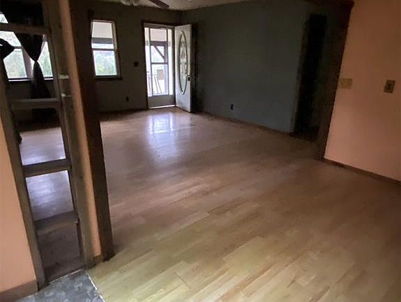 Detached shopCovered front porchView wildlifeHilltop overlooking woodsPaved roadLaminate flooring
