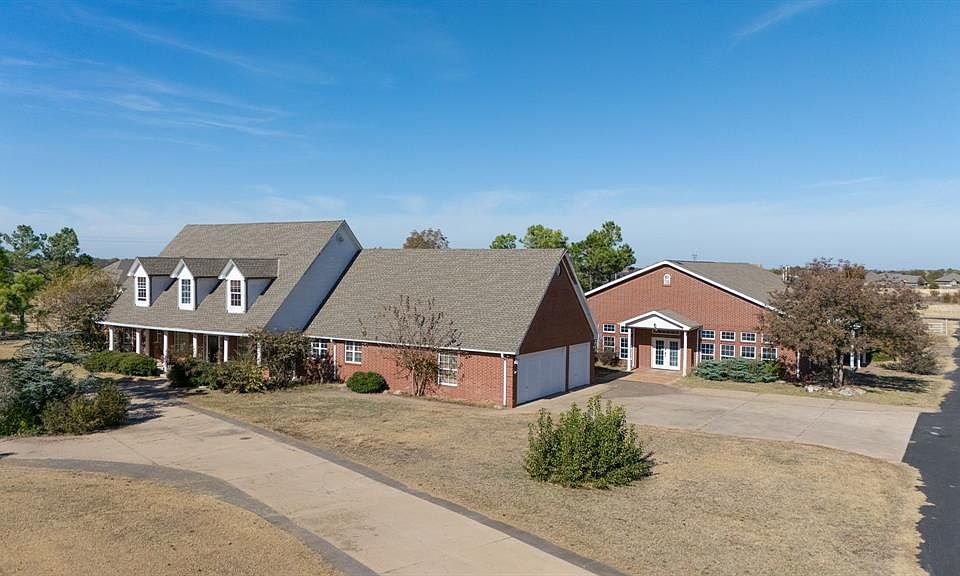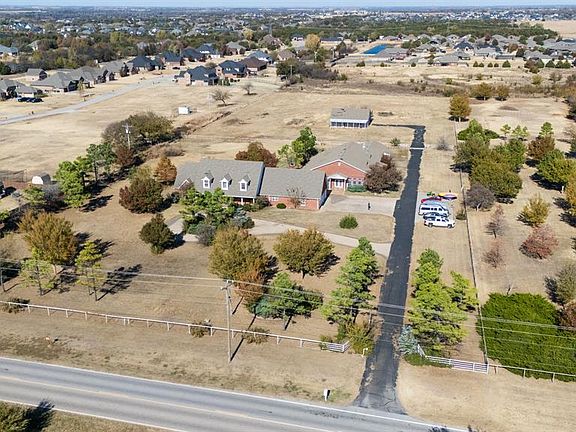 Welcome to an incredible estate opportunity in west Edmond, perfectly situated on 13.06 picturesque acres just off Covell between May and Penn. This property features three impressive structures, including a ~4,200 sq. ft. primary residence, an expansive ~4,400 sq. ft. indoor pool house with ADU, and a 4-stall barn/stable measuring approximately 1,350 sq. ft. All three buildings are scheduled for new roofs at the end of November.