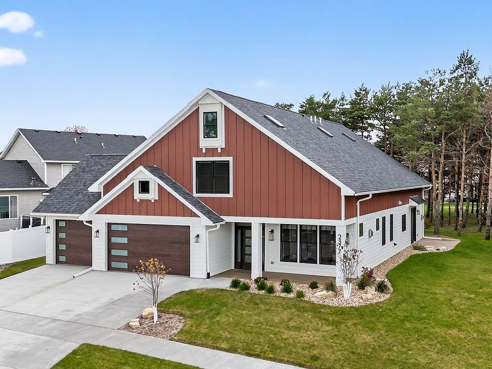 Exceptional top of the line quality and sophisticated design shows out in this beautiful new 2025 fully finished 2 story. 2 stunning owner's suites, one on each level perfect for multi-generational living with detailed, elegant and high end interior appointments...even down to the mirrors and ample built-ins! The huge open main floor plan features a gourmet kitchen and huge center island, two fireplaces, multiple extra tall patio doors with views to soaring pines and pond views. The second level is vaulted with sky lighting and wet-bar/kitchenette. This home goes beyond expectations for this price range with every square foot. The fully detailed heated garage is amazing, the multiple exposed aggregate wrap-around patios, covered decks and detailed porch are strategically planned so you can enjoy every inch of this home and lot. Ask us about the upgraded building materials used that go beyond expectations. A must see!