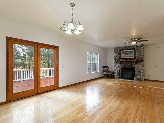 MOVE-IN READY – JUST WAITING FOR YOU TO CALL IT HOME! This lovely ranch-style home offers 3 bedrooms, 2 baths, and 1,808 square feet of comfortable living space on 3.83 wooded acres south of Hamilton in the scenic Lick Creek area. You’ll love the spacious floor plan and the striking rock fireplace that serves as a beautiful focal point. Relax on the covered front porch or enjoy sunny mornings and afternoons on the back deck. Hardwood floors grace the main living area, adding warmth and charm. Take in the natural surroundings and stunning views that make this property so special. A pond fed by run-off water adds extra tranquility. And, the Bitterroot River is just a short walk -blue ribbon trout fishing is just minutes away. A 36x44 shop with power includes an 8x44 lean-to, and a covered 16x36 carport pad. There’s also a 24x25 storage shed, 19x36 storage shed plus a 20x20 shed with an attached kennel. With easy access off Highway 93 and just minutes from town, this property offers both convenience and tranquility. A true gem!