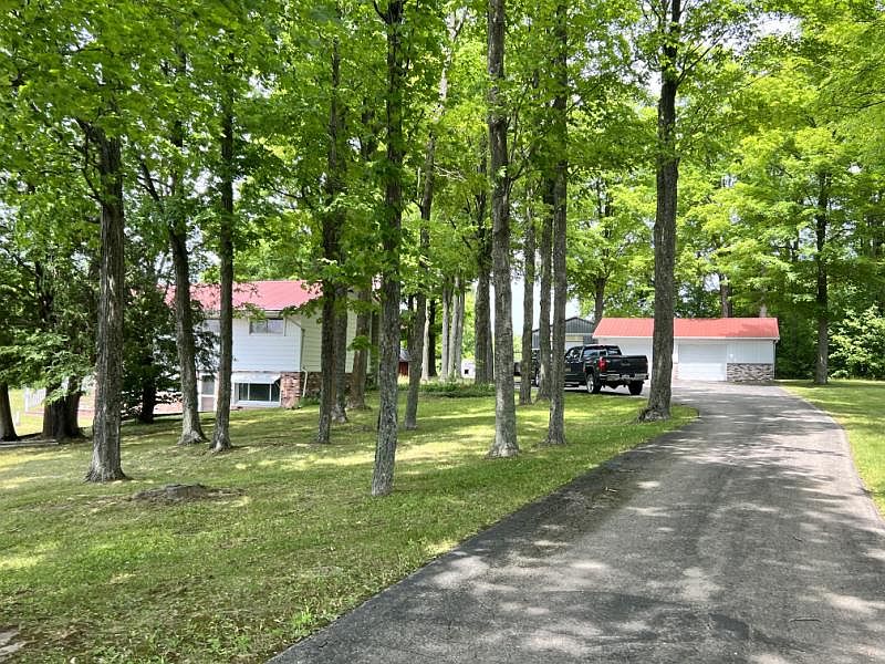 Lovely Setting! Five bedroom home with over 5 acres, close to downtown Hillman and the high school. Detached two car garage with an additional pole barn. Paved county road frontage and paved driveway.
