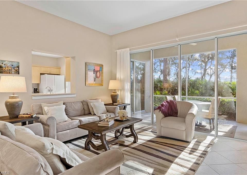 This clean and bright first floor Merano offers you one level of living with an attached 2-car garage. This spacious three bedroom (one could easily be a dedicated office area if needed), two and a half bath home has two walk-in closets, a large laundry room, a large kitchen with a light and bright breakfast room and wet bar. Merano owners enjoy a lap pool and spa with attached kitchen and small fitness room. Pelican Landing offers outstanding amenities such as exercise facility, tennis courts, pickleball, kayak park, bocce, a one-of-a-kind private island beach park and equity golf.