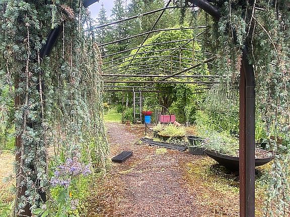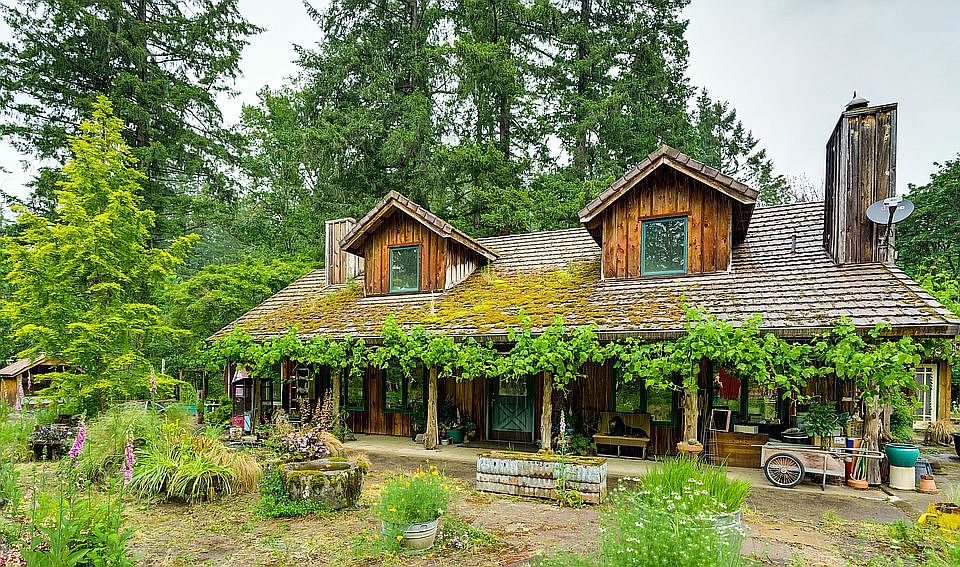 Private, Unique setting with 1,000+ ft x 80'creek front - a paradise of trees and level sunny area for a self sustainable lifestyle! Many outbuildings! Cottage studio, 2 car garage with a studio upstairs and workshop below, storage barn nearby and open sheds for equipment, etc. Be the envy of friends & entertain in outdoor Gazebo w/peaceful pond, gardens, greenhouse, unique & rare yard decor and set far off the highway! Make it yours! Rare 100% ADA accessible home! Elevator to 2nd floor suite!