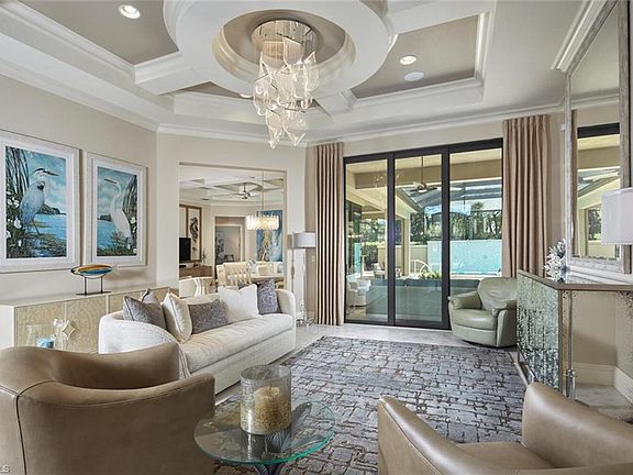 Exquisite Former Model Home in The Colony – Sophisticated Design Meets Modern Comfort Step through a stunning wrought iron entry into this impeccably designed former model home, offering 3 spacious bedrooms, 3 full bathrooms, a generous 3-car garage, and a versatile bonus room ideal for a den, media space, or guest suite. Built in 2015—making it one of the newest single-family homes in The Colony—this residence seamlessly blends timeless elegance with today’s luxury lifestyle. Thoughtful architectural details abound, from custom ceiling treatments to beautifully laid tile flooring that flows throughout the main living spaces. The open-concept floor plan is ideal for both entertaining and everyday living, with the heart of the home centered around a chef-inspired kitchen featuring gorgeous quartzite countertops, gas cooking, top-tier appliances, and a walk-in pantry designed to impress even the most discerning culinary enthusiast. Retreat to the expansive primary suite with dual walk-in closets and a spa-like bathroom complete with a soaking tub, separate shower, and elevated finishes. Two additional guest suites offer privacy and comfort for family and friends alike. The bonus room—with direct pool access and custom built-in cabinetry—offers incredible flexibility to suit your lifestyle. Designed for the Florida lifestyle, the home’s indoor spaces open effortlessly to a resort-style outdoor oasis featuring a newly updated pool and spa, outdoor kitchen, and covered sitting area, perfect for entertaining or quiet relaxation. Additional highlights include impact-rated windows and doors for peace of mind and energy efficiency. This is a rare opportunity to own a newer, meticulously updated home in the sought-after Colony community—where elegance, comfort, and lifestyle converge. The Colony Golf & Bay Club is a highly amenitized community to include a private island beach park, private dining at The Bay Club, fitness center, tennis, pickle ball, kayaking & sailing. Golf memberships optional. The community is situated in a highly sought after area of Southwest Florida, just minutes to the Intl. airport; super close to shopping and dining.