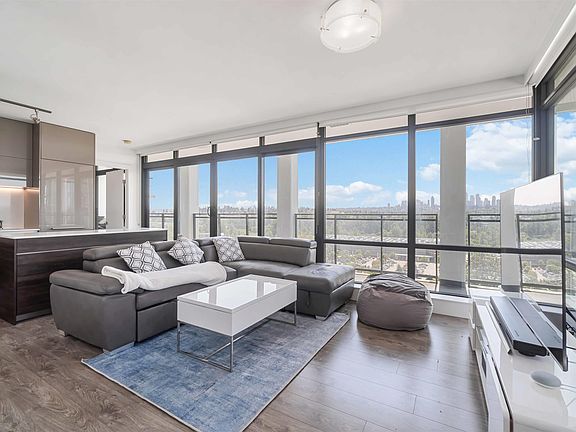 Welcome to Milano by Solterra in Brentwood Park! This stunning 2 bed, 2 bath corner home offers 765 sq.ft. of modern living with floor-to-ceiling windows and a massive wrap-around balcony showcasing sweeping city and park views. The sleek kitchen features integrated appliances, gas cooktop, and a large island, while both bedrooms are bright and well-sized, including a spa-inspired ensuite. Enjoy in-suite laundry, A/C, and resort-style amenities including a fitness centre, guest suite, lounge, and outdoor spaces. Steps to Brentwood Mall, SkyTrain, shops, and dining. Includes 1 parking and 1 storage.