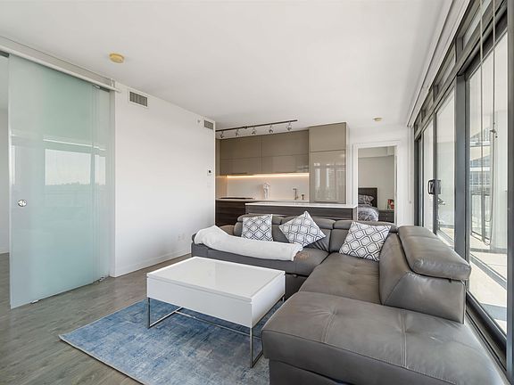 Corner homeFloor-to-ceiling windowsMassive wrap-around balconySleek kitchenIntegrated appliancesGas cooktopSpa-inspired ensuite