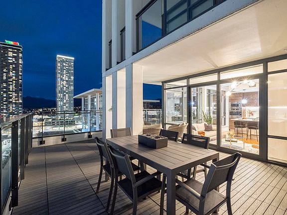 Experience luxury living at this SUB-PENTHOUSE unit at the coveted MILANO building! With only 3 units on this floor, this 2 bed + 2 bath 998 sqft home offers ultimate privacy. Enjoy the spacious layout w/ floor to ceiling windows, herringbone hardwood floors, AC & a modern kitchen w/ premium built in appliances, gas cooktop & quartz countertops. The 462 sqft balcony showcases breathtaking North-West views & ample space to entertain with family & friends. The primary suite offers an opulent 5-piece ensuite + secondary bdrm is generously sized. Great building amenities + 3 PARKING (1 EV) & 1 storage locker. Located in the heart of Brentwood, just steps to Whole Foods, Amazing Brentwood, SkyTrain & restaurants. Easy access to Hwy 1 & Lougheed Hwy to be downtown within minutes!