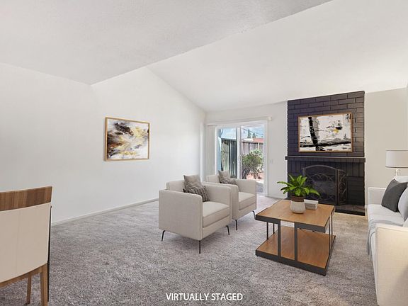 Welcome home to 2378 Cheshire Place in San Leandros Sandpiper Community. This spacious 3 bedroom 2.5 bath townhouse offers 1,723 square feet of comfortable living. Soaring ceilings, large stairway windows, and a floor to ceiling wood burning fireplace create a warm and inviting atmosphere. The kitchen is designed for everyday living with quartz countertops, stainless steel appliances, and a sunny breakfast nook. A flexible downstairs den makes the perfect playroom, guest room, or home office. Upstairs, the primary suite includes a Jack and Jill bath, wall to wall closet, and cozy reading nook. Recent updates include new carpet on the stairs, upstairs hallway, and secondary bedroom. Outdoors, enjoy one of the largest patios in the community, perfect for barbecues, gardening, or entertaining. An attached 2 car garage plus driveway parking for 3 more vehicles provides ample space. Community amenities include a clubhouse, pool, and hot tub. Minutes from BART, Interstate 880, shopping, dining, and parks, and within walking distance of McKinley Elementary and San Leandro High School, this home combines comfort, convenience, and location.