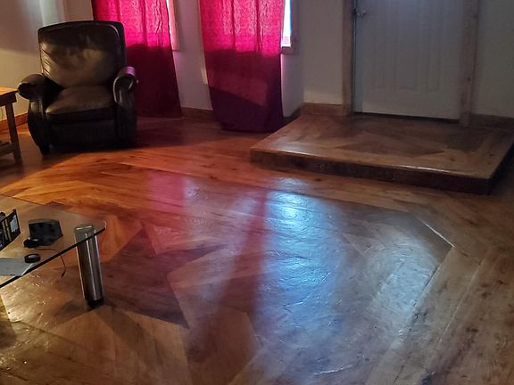 Steel pipe working corralsWalk-in closetsLarge jacuzzi tubDetailed woodworkCustom rock showerMature timberCustom wood flooring