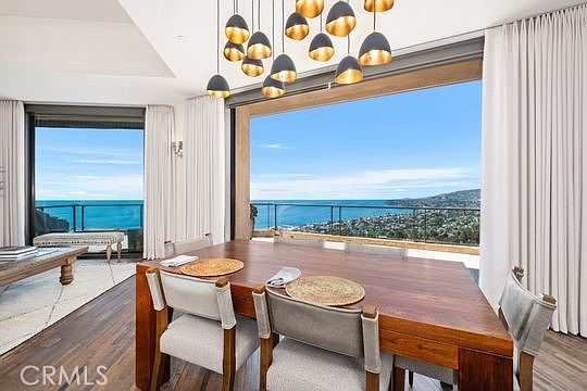 Perched in one of Laguna Beach’s most breathtaking settings, this four-bedroom, three-and-a-half-bath architecturally rich residence offers endless Pacific Ocean views, from the shimmering waters by day to the dazzling coastal lights by night. Designed to maximize the panoramic scenery, retractable glass doors seamlessly merge indoor and outdoor living, inviting in the ocean breeze and framing the stunning vistas.