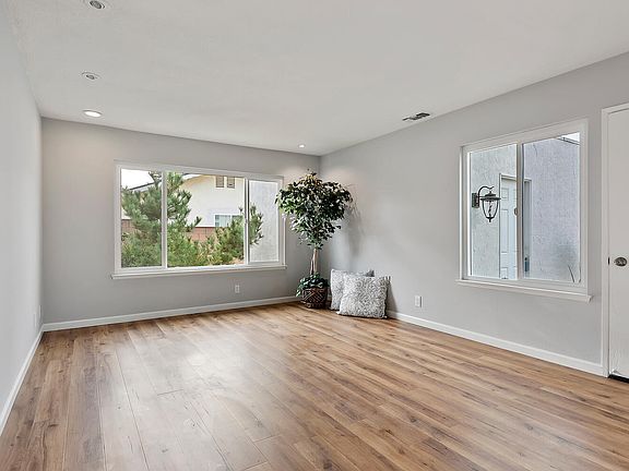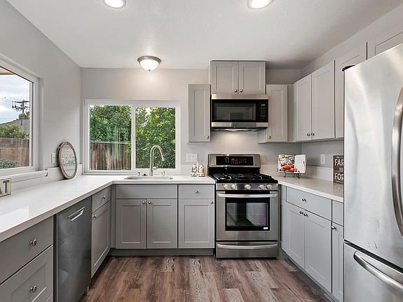 Welcome to this single-story 3 bedroom, 1 bathroom home in a great location at the end of a cul-de-sac on a large pie-shaped lot. RV parking is possible with minor modifications. This beautiful home has recently been updated with new kitchen cabinets, stainless steel appliances, farm sink and quartz countertops. There is also a remodeled bathroom, new flooring throughout, new paint inside and out, and brand new windows. Additional features include an attached 2-car garage, numerous canned lights in the kitchen, master bedroom, and living room, and newer heating and a/c. There is a plenty of room to add on an extra bedroom/bathroom, or whatever you'd like. This is a great starter home or perfect for empty-nesters.