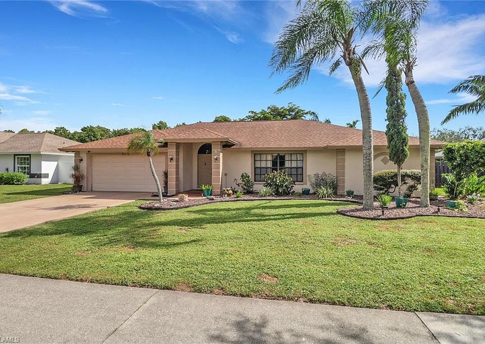 Welcome to this charming 3-bedroom, 2-bathroom home located in desirable River Reach. Offering over 2,000 square feet of living space, this well-maintained residence blends comfort, functionality, and an unbeatable location. The home features a spacious layout with updated luxury vinyl plank flooring in the primary and guest bedrooms, adding warmth and durability. A new A/C unit was installed in 2023, and recent updates include a new garage door, fresh exterior paint (2019), a fully fenced yard, and a roof replacement (2018), New waterheater was install April 2025, and a brand new irrigation system, giving you peace of mind for years to come. The permitted, wooden-framed shed with windows, workbenches and shelving in the backyard provides additional storage space! River Reach is a quiet, non-gated subdivision and residents have the option to join Coconut River Estates for access to a wide range of amenities including a community boat ramp with Gulf access, heated pool, pickleball and tennis courts, shuffleboard, a dog park, and more, perfect for those seeking an active Florida lifestyle. Centrally located in South Naples, you’ll enjoy convenient access to shopping, dining, downtown Naples, and beautiful Gulf beaches. Whether you're looking for a primary residence or a seasonal getaway, this home offers exceptional value in a prime location.