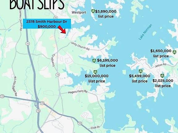 RARE opportunity steps away from Lake Norman! Full brick, custom home INCLUDES deeded boat slip steps away from your house! Enjoy year-round lake views from your newly updated back deck. Located in the highly desirable Smithstone community, this home offers the perfect lake lifestyle without the waterfront price tag. The community center (w/outdoor pool & access to boat slips) is within a stone's throw, perfect convenience for the perfect day at the lake! Inside, the home features real 3/4" hardwood floors, custom built-ins, and a bright, open floor plan centered around a dramatic vaulted family room w/expansive picture windows facing toward the lake. The main level offers true flexibility with a spacious primary suite as well as a second bedroom w/attached full bath - ideal for guests or multi-generational living. The large kitchen includes solid cherry wood cabinetry, granite countertops, walk-in pantry, and a gas cooktop. Upstairs offers a flex room/loft overlooking the family room, 2 large bedrooms & full baths, plus 2 additional flex/bonus rooms. Need storage? You'll love the large, walk-in attic storage and the extra built-ins in the garage. Full brick, deeded boatslip, lake views, flexible and spacious living spaces, QUICK ACCESS RIGHT OFF BUSINESS 16 WHICH GIVES QUICK ACCESS TO HWY 16 for low-traffic commutes - this home is a rare find, and offered at a competitive price.