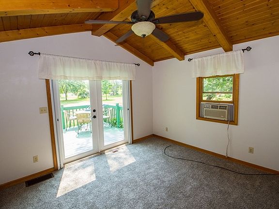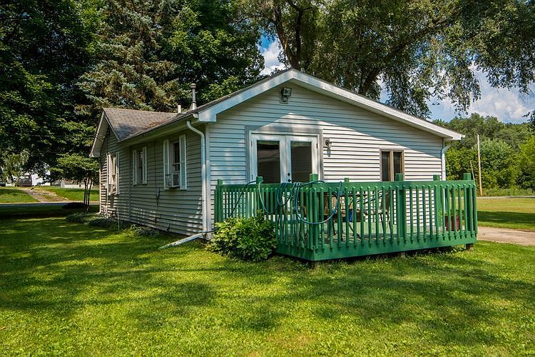 Great 2 bedroom home on 2 acres and oversized 2 car garage ! Home has fresh paint, new flooring in kitchen & bathroom and new carpet throughout....so ready for new Owners. Home offers large eat-in kitchen to include stove/oven, refrigerator, dishwasher and microwave, living room with sliding glass doors to deck that overlooks large back yard (2 acres), 1 full bathroom, 2 bedrooms with double closets, part basement with storage/utility and laundry area to include washer & dryer. Oversized 2 car garage with opener.