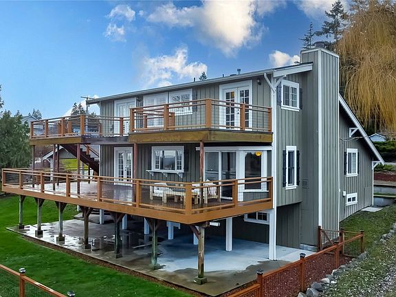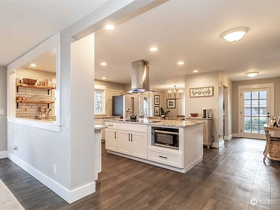 Manchester, the gem of Port Orchard, offers a renovated view home like no other! Views of the Sound, Mt Rainier & the Seattle Skyline abound from multiple decks & windows. Main level features an island kitchen w/ granite countertops & GE Cafe appliances. Full dining room + living room w/ FP & access to huge covered deck. Upper level features massive family room w/ exposed beams, French doors to deck & W/D. Wood wrapped lower level w/ 2nd kitchen, rec room & W/D. Bedrooms & bathrooms on all 3 levels all accessed by custom spiral staircase allows for primary suite to be on any level. 5pc bath on main including clawfoot tub under a skylight + tiled walk in shower. Car charging outlet. ADU/MIL ready! 8 min to ferry. 30 min to Seattle!