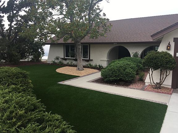 The front yard has been landscaped with artificial turf surrounded by mature Hollywood junipers. Landscape rock accents the Magnolia tree. The exterior stucco and trim has been recently painted. The driveway was replaced and expanded with enough space for 3 cars.