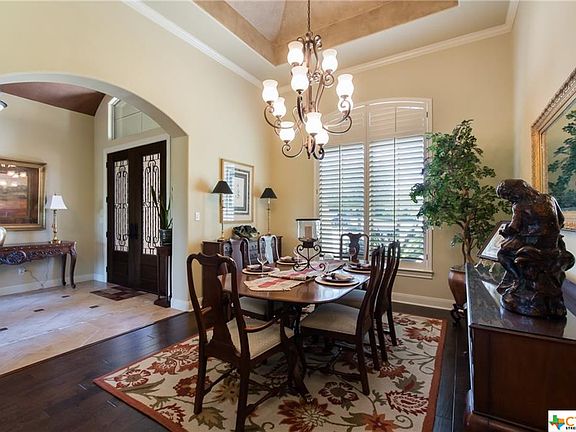 Gorgeous home in River Crossing is immaculate & move in ready. Open floorplan has high ceilings, beautiful hardwood & stone floors, architectural details & lots of windows overlooking the backyard oasis. Kitchen has a center island w gas cooktop, granite counters, wine fridge, bkfst bar & nook w views of the private pool area. Master is separate w fabulous bath, 2 closets & semi-circular shower. Lg UR, mud rm + 3 car garage. Upstairs includes master size bedroom w sitting area, full bath & gm rm/den.
