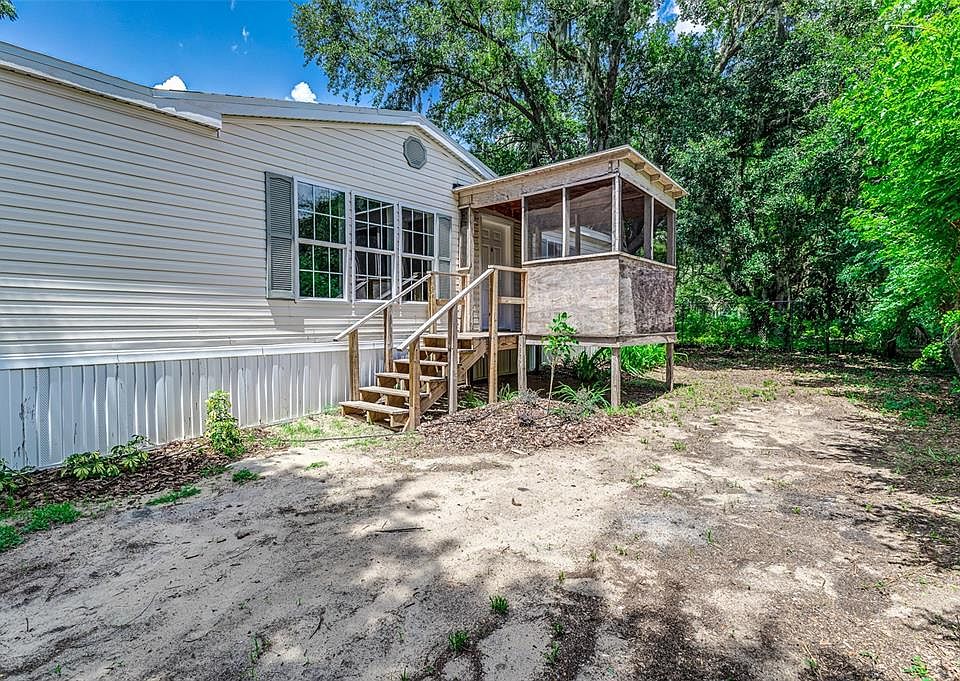 The interior of this home features a brand-new AC, new electric water heater, all new flooring, ceiling fans and light fixtures, and fresh paint. When you walk in, you’re greeted by cathedral ceilings, large windows providing lots of natural light, and an open floorplan creating a large and airy living space. The heart of the home, the kitchen, boasts brand-new stainless-steel appliances, granite countertops, new cabinets, and a large kitchen island perfect for dining or entertaining. The 3 bedrooms all feature new plush carpet, and the primary bedroom hosts a walk-in closet and updated ensuite bathroom with walk-in shower and new vanity. The laundry room is located off the kitchen, conveniently close but out of the way. Outside, this home has a brand-new roof, new landscaping, covered and screened in front porch, detached shed perfect for storage and projects, and sits on almost half an acre. The yard is spacious and partially fenced-in, providing privacy, security, and plenty of room for outdoor activities.