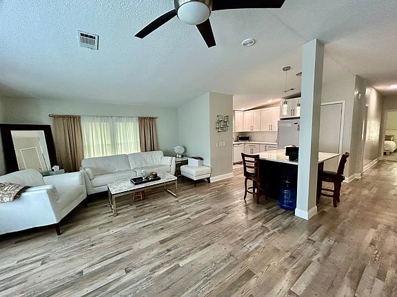 Private Setting and Beautifully Remodeled! Enjoy your own private backyard with no homes behind you, bordered by a fence and open green space for added privacy and tranquility - a rare find in this community! This stunning two-bedroom, two-bath home has been professionally remodeled from top to bottom and shows like a model. Featuring an open floor plan with a spacious living room, dining area, and kitchen that flow seamlessly together, this home feels bright, airy, and inviting with high ceilings that enhance the open feel throughout. The ceilings have been completely redone - no popcorn and no center seam - giving the home a clean, modern look that truly sets it apart. The kitchen is a showstopper - completely remodeled with all-new cabinets, quartz countertops, new lighting, new appliances (including a refrigerator with icemaker), and abundant counter and cabinet space. Throughout the home, you'll find new vinyl flooring, new baseboards, and beautifully plastered walls. The bedrooms feature plush carpeting, while both bathrooms have tile flooring. There are also three new ceiling fans throughout. The home is being sold fully furnished, including tasteful furniture, wall décor, TVs, TV stand, patio furniture, all window treatments, and more - all appliances, including the washer and dryer, are staying. The washer and dryer are conveniently located inside the home, just off the lanai. A wall of windows in the living room fills the space with natural light, creating a bright and open atmosphere. Other updates include a newer roof (2 years old) and a new hot water heater (less than a year old), ensuring peace of mind for years to come. This home truly has it all - private location, open layout, high ceilings, and a completely remodeled, move-in-ready. Home is within the prestigious gated community of Lakes of Melbourne. Boasting upscale charm and an array of amenities, including a recently upgraded clubhouse, resort-style pool, card and game room, and billiards, this community offers a lifestyle of luxury and convenience. Situated conveniently close to restaurants, shopping, hospitals, major routes, and the pristine beaches of Melbourne and Cape Canaveral, Lakes of Melbourne is the perfect haven for those seeking year-round residence or a winter retreat. Don't miss out on the opportunity to experience the epitome of 55+ living in this sought-after gated community.