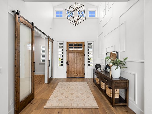 Extraordinary chance to own a premier waterfront property in the newly established Creighton Woods. This custom-built home, nestled in the heart of the Eagle Island corridor, epitomizes luxury with thoughtful design & timeless finishes. Rich hardwood floors lead you through an open-concept living space, where expansive windows frame serene views of the pond. A chef's kitchen w/ high-end Thermador appliances, including a professional 48" range, built-in speed oven, & coffee maker, w/ quartz countertops. The thoughtfully designed floorplan features a primary suite, complete with built-in shelving & a charming reading nook overlooking the water. A tranquil primary bathroom w/ oversized tiles, dual vanities, & a meticulous walk-in closet. Two additional ensuite bedrooms, an office, & versatile laundry/craft room complete the main level. Upstairs, an oversized bonus room and a dedicated gym space provide the perfect retreat for relaxation. Entertain effortlessly w/ a built-in BBQ and a firepit area, & much more!