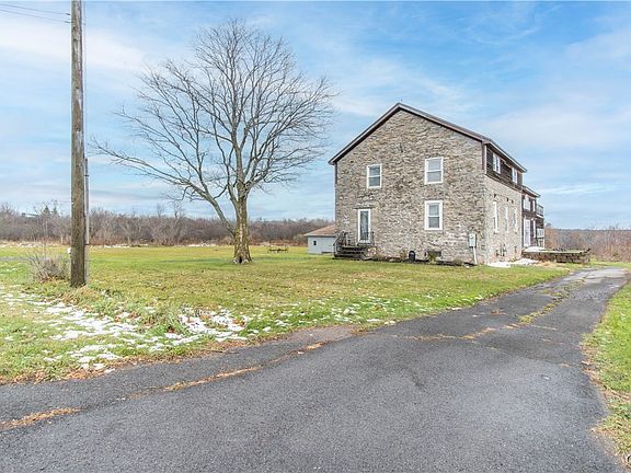 Welcome to this one-of-a-kind stone home situated on 9.3 acres, overflowing with character and endless opportunities! Entering the home you will find an enclosed porch, perfect for storage, tools or even a home gym along with a mud room that helps keep shoes and coats organized. Inside you will find durable tile throughout the kitchen and bathrooms, complimented by beautiful hardwood floors throughout the rest of the house. The kitchen is bathed in natural light thanks to French doors and large windows. It features a gorgeous butcher block island, newer appliances and a dining area. There are three generously sized bedrooms and two full bathrooms. Currently, the bedroom on the main floor is used as a laundry room that can easily be converted back to a primary bedroom with an en-suite bathroom. Upstairs, you’ll discover a cozy nook perfect for reading, lounging, or working from home, along with a versatile bonus area that opens onto a deck overlooking the backyard. This room could be used as a second living room, bar area, or guest suite—the possibilities are endless! The finished attic space could be used for storage, hobbies, or an office space. Outside, you will find a compact 3-stall garage. This unique property is truly a rare find, located 10 minutes from Watertown and 20 minutes from Fort Drum. If you're looking for charm, plenty of space, and flexible living areas, this home has it all!
